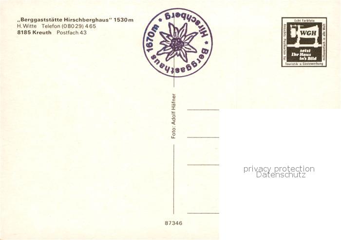 73836608 Kreuth Tegernsee Berggaststaette Hirschberghaus postalisch nicht gelaufen Erhaltung siehe scans [WerneD78] KatCode: 11110009182124