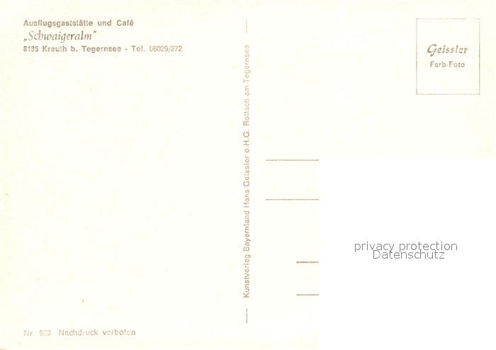 32984269 Kreuth Tegernsee Cafe Schwaigeralm postalisch nicht gelaufen Erhaltung siehe scans [AndreD76] KatCode: 11110009182124