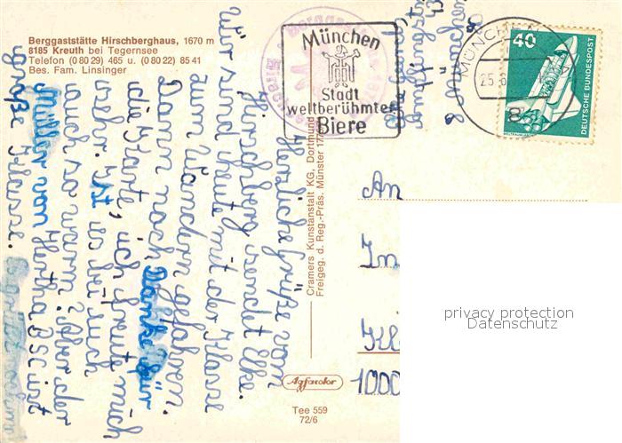 72840061 alte Postkarte Kreuth Tegernsee Fliegeraufnahme Berggaststaette Hirschberghaus postalisch gelaufen Erhaltung siehe scans [LiesaD40] KatCode: 11110009182124