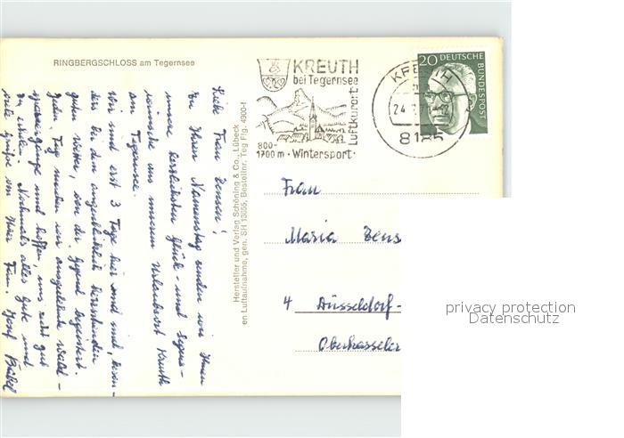 72302136 alte Postkarte Kreuth Tegernsee Fliegeraufnahme Ringbergschloss postalisch gelaufen Erhaltung siehe scans KatCode: 11110009182124