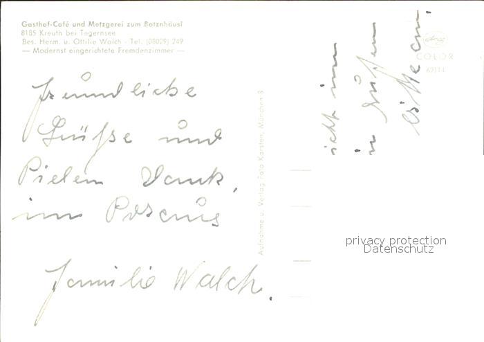 71909197 Kreuth Tegernsee Gasthof Cafe Metzgerei Botznhaeusl postalisch nicht gelaufen Erhaltung siehe scans KatCode: 11110009182124