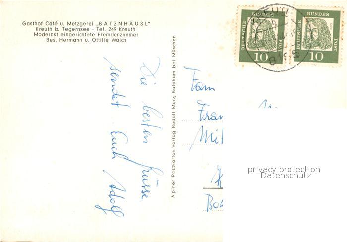 73646306 alte Postkarte Kreuth Tegernsee Gasthof Cafe und Metzgerei Batznhaeusl postalisch gelaufen Erhaltung siehe scans [FriedD77] KatCode: 11110009182124