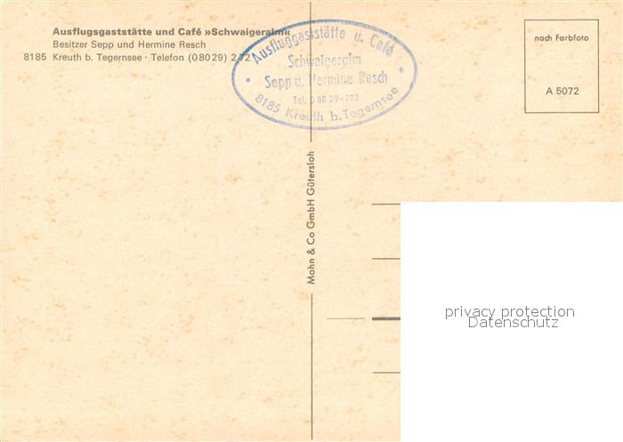 73646130 Kreuth Tegernsee Gaststaette Cafe Schwaigeralm postalisch nicht gelaufen Erhaltung siehe scans [WerneD78] KatCode: 11110009182124