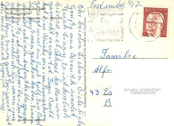 73313041 alte Postkarte Kreuth Tegernsee Gaststaette Schwaigeralm postalisch gelaufen Erhaltung siehe scans [NatalD47] KatCode: 11110009182124