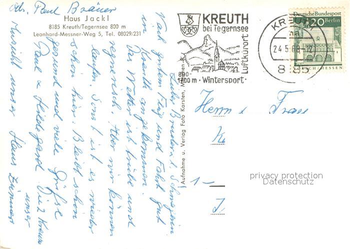 73653267 alte Postkarte Kreuth Tegernsee Haus Jackl postalisch gelaufen Erhaltung siehe scans [WerneD78] KatCode: 11110009182124
