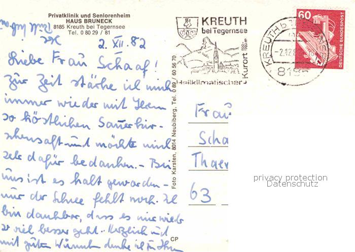72889019 alte Postkarte Kreuth Tegernsee Privatklinik und Seniorenheim postalisch gelaufen Erhaltung siehe scans [LiesaD40] KatCode: 11110009182124