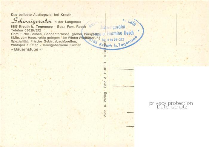 73764359 Kreuth Tegernsee Schwaigeralm in der Langenau Gaststube postalisch nicht gelaufen Erhaltung siehe scans [FriedD77] KatCode: 11110009182124