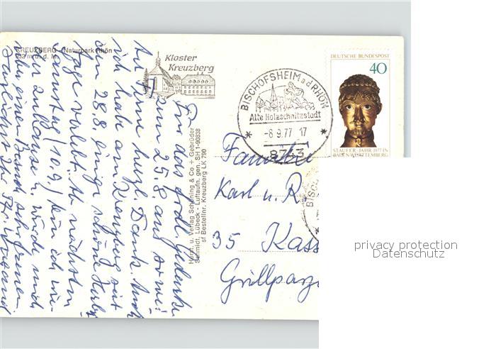 71920193 alte Postkarte Kreuzberg Rhoen Fliegeraufnahme Kloster Kreuzberg Naturpark postalisch gelaufen Erhaltung siehe scans KatCode: 11110009673117