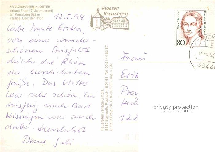 72646069 alte Postkarte Kreuzberg Rhoen Franziskaner Kloster 17. Jhdt. Kreuzweg Heiliger Berg der Rhoen Fliegeraufnahme postalisch gelaufen Erhaltung siehe scans [FriedD77] KatCode: 11110009673117