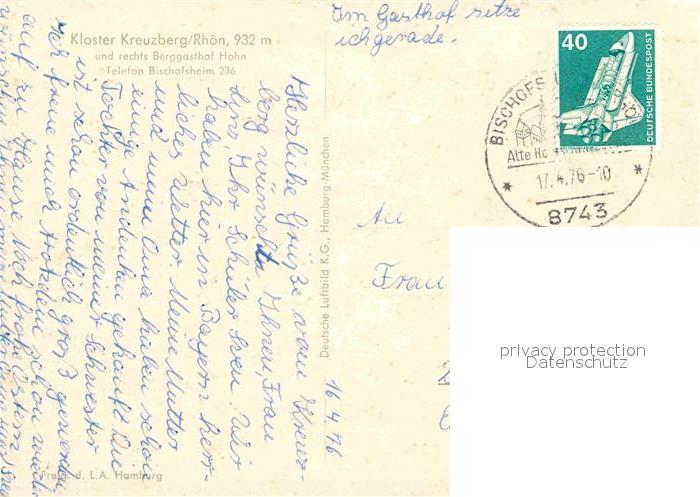 72758899 alte Postkarte Kreuzberg Rhoen Kloster Kreuzberg Berggasthof Hahn postalisch gelaufen Erhaltung siehe scans [WerneD78] KatCode: 11110009673117