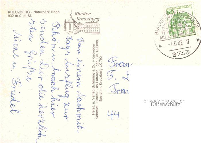 72753967 alte Postkarte Kreuzberg Rhoen Kloster Rhoen Naturpark Fliegeraufnahme postalisch gelaufen Erhaltung siehe scans [FriedD77] KatCode: 11110009673117