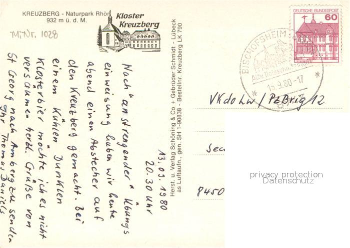 73718428 alte Postkarte Kreuzberg Rhoen Naturpark Rhoen Kloster Kreuzberg postalisch gelaufen Erhaltung siehe scans [WerneD78] KatCode: 11110009673117