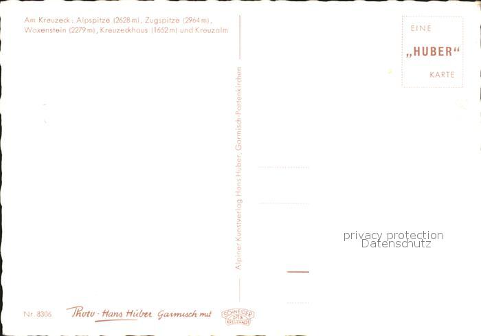 72592582 Kreuzeck Alpspitze Zugspitze Waxenstein Kreuzeckhaus Kreuzalm Huber Karte Nr 8306 postalisch nicht gelaufen Erhaltung siehe scans [FriedD77] KatCode: 11110009180117