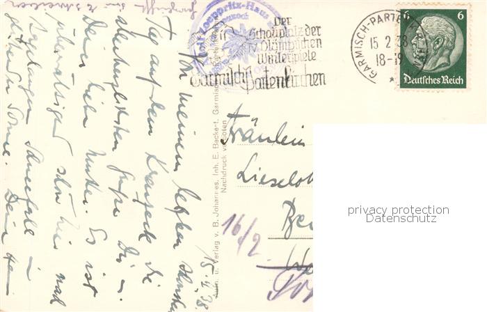 73808298 Kreuzeck Garmisch-Partenkirchen Kreuzeckhaus Alpenspitze Hoelentalspitzen Zugspitze postalisch gelaufen Erhaltung siehe scans [WerneD78] alte Postkarte Wern Katcode 11110009180117