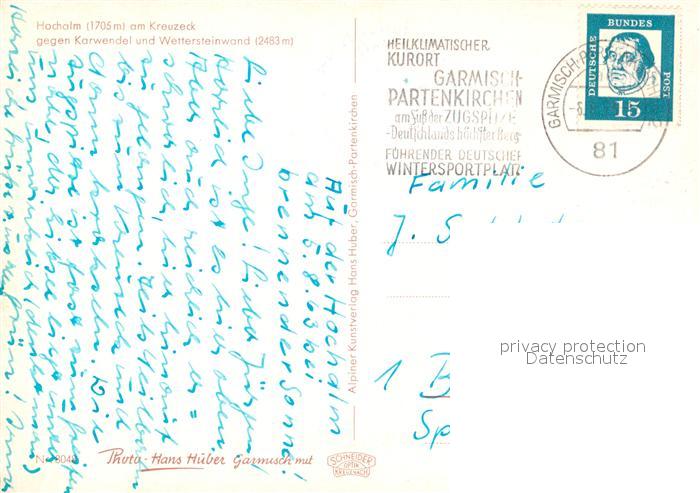 73076956 alte Postkarte Kreuzeck Hochalm Karwendel Wettersteinwand postalisch gelaufen Erhaltung siehe scans [KathaD81] KatCode: 11110009180117