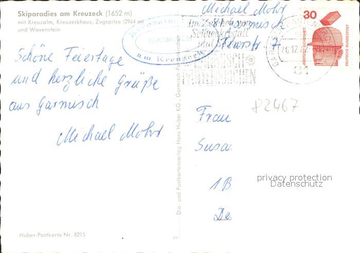 71994467 alte Postkarte Kreuzeck Kreuzalm Kreuzeckhaus Zugspitze Waxenstein postalisch gelaufen Erhaltung siehe scans KatCode: 11110009180117