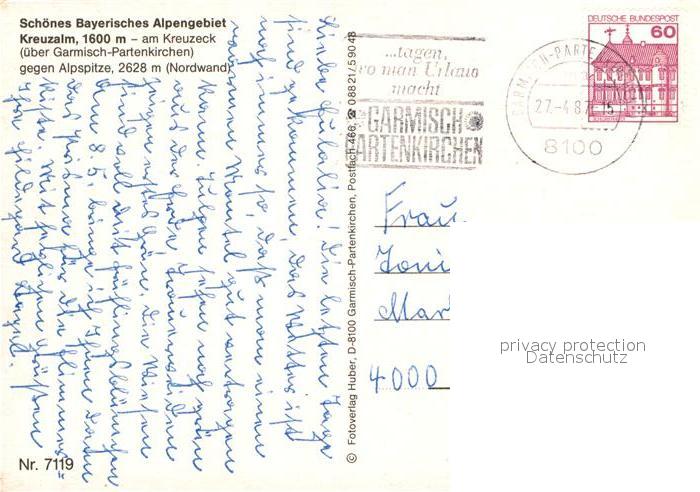 72985171 alte Postkarte Kreuzeck Kreuzalm mit Alpspitze postalisch gelaufen Erhaltung siehe scans [LiesaD40] KatCode: 11110009180117
