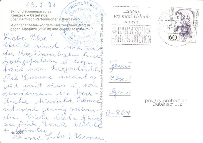 72030254 alte Postkarte Kreuzeck Osterfelder Sonnenanbeter Kreuzeckhaus Alpspitze Zugspitze postalisch gelaufen Erhaltung siehe scans KatCode: 11110009180117