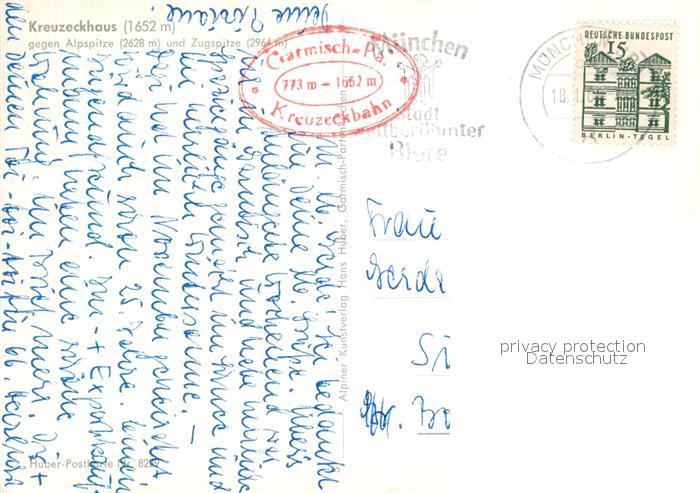 72987977 alte Postkarte Kreuzeckhaus gegen Alpspitze und Zugspitze Wintersportplatz Alpen postalisch gelaufen Erhaltung siehe scans [FriedD77] KatCode: 11110009180117