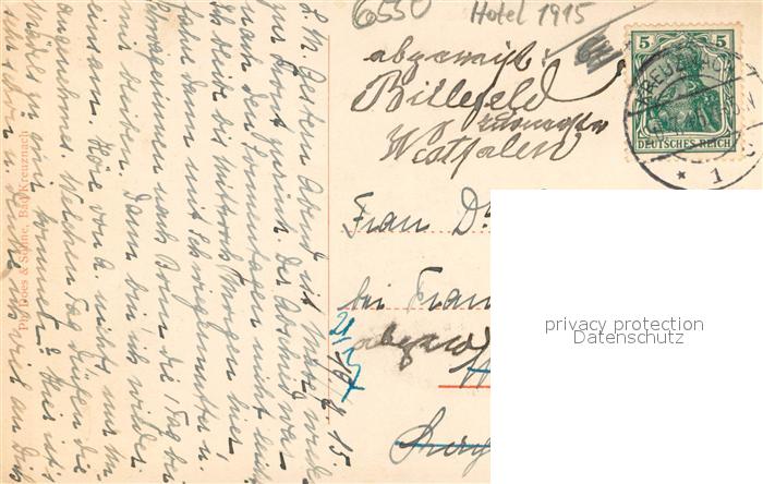 73754258 alte Postkarte Kreuznach Bad Kurhaus u. Palasthotel postalisch gelaufen Erhaltung siehe scans [LiesaD40] KatCode: 11110007133006