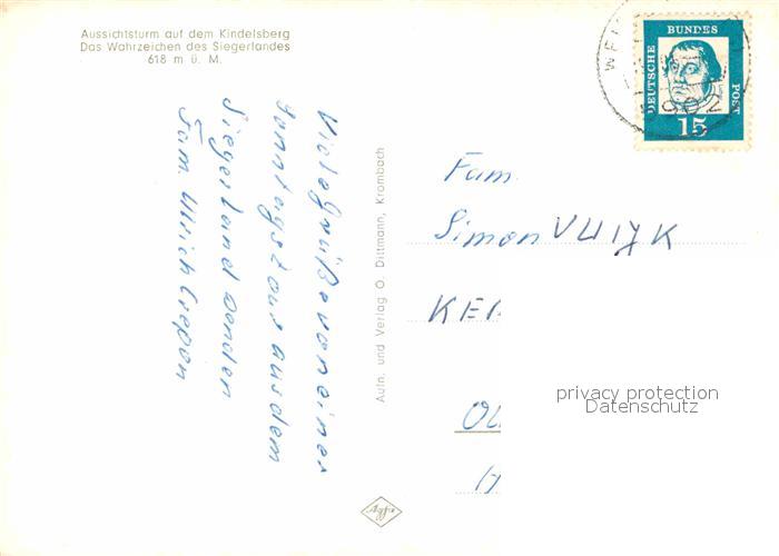 72764521 alte Postkarte Kreuztal Westfalen Aussichtsturm auf dem Kindelsberg postalisch gelaufen Erhaltung siehe scans [AndreD76] KatCode: 11110005970024