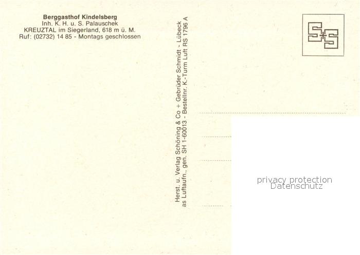 73182362 Kreuztal Westfalen Fliegeraufnahme Berggasthof Kindelsberg postalisch nicht gelaufen Erhaltung siehe scans [NatalD47] KatCode: 11110005970024