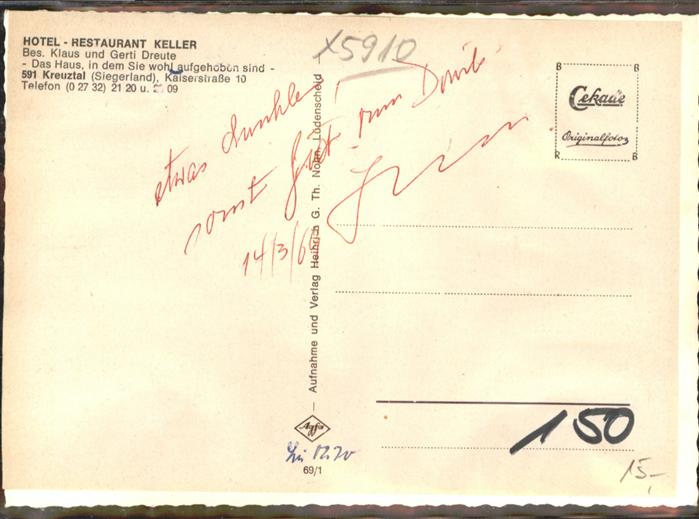 41044095 Kreuztal Westfalen Hotel Keller KatCode 11110005970024