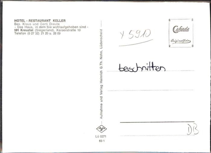41044102 Kreuztal Westfalen Hotel Keller KatCode 11110005970024