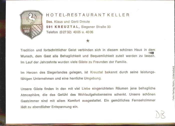 41044101 Kreuztal Westfalen Hotel Keller KatCode 11110005970024