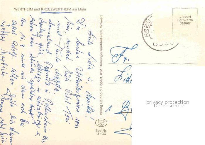 72630801 alte Postkarte Kreuzwertheim Fliegeraufnahme Mainpartie postalisch gelaufen Erhaltung siehe scans [LiesaD40] KatCode: 11110009677151