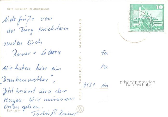 72381953 alte Postkarte Kriebstein Burg postalisch gelaufen Erhaltung siehe scans KatCode: 11110014182210