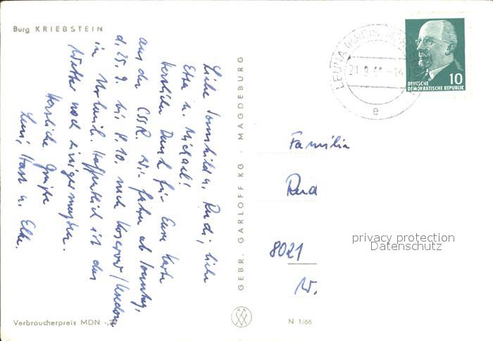 72357230 alte Postkarte Kriebstein Burg Kriebstein postalisch gelaufen Erhaltung siehe scans KatCode: 11110014182210