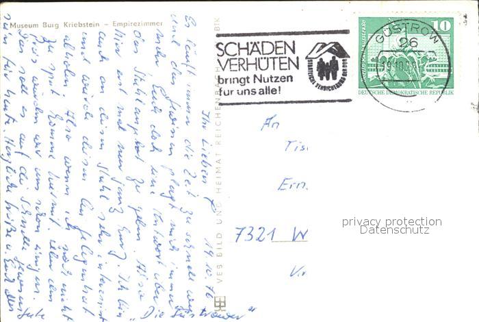 72396720 alte Postkarte Kriebstein Burg Museum Empirezimmer postalisch gelaufen Erhaltung siehe scans KatCode: 11110014182210