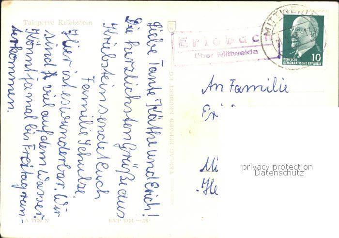 72386188 alte Postkarte Kriebstein Talsperre postalisch gelaufen Erhaltung siehe scans KatCode: 11110014182210