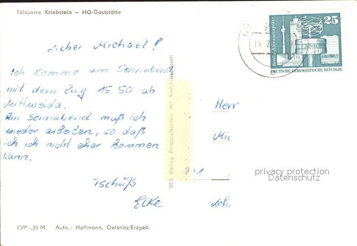 72168525 alte Postkarte Kriebstein Talsperre HO Gaststaette postalisch gelaufen Erhaltung siehe scans KatCode: 11110014182210