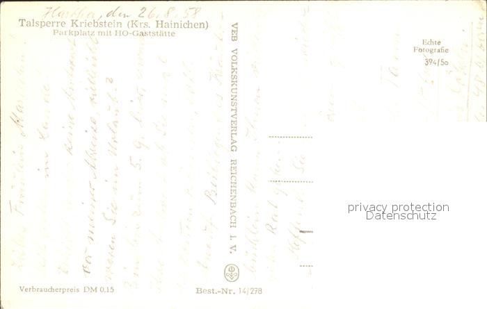 72118003 Kriebstein Talsperre Parkplatz mit HO Gaststaette postalisch nicht gelaufen KatCode: 11110014182210