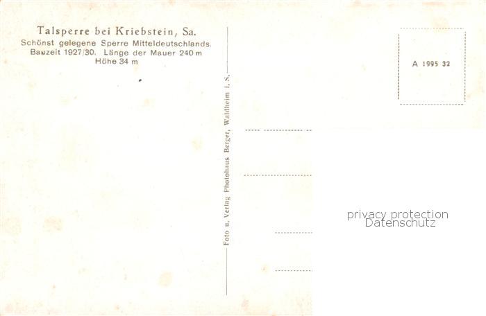 73817510 Kriebstein Talsperre von der Ehrenberger Kanzel postalisch nicht gelaufen Erhaltung siehe scans [FriedD77] KatCode: 11110014182210