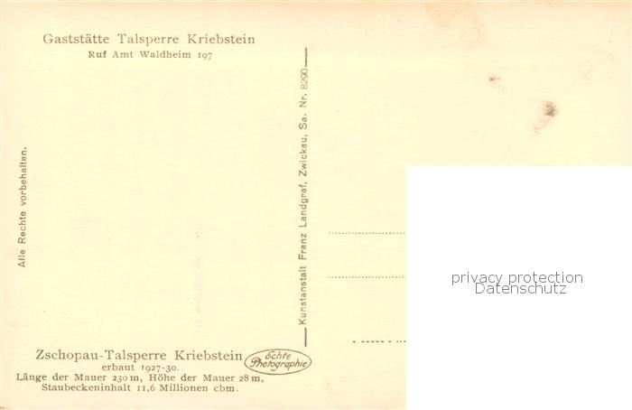 73801592 Kriebstein Zschopau Talsperre Kriebstein postalisch nicht gelaufen Erhaltung siehe scans [WerneD78] KatCode: 11110014182210