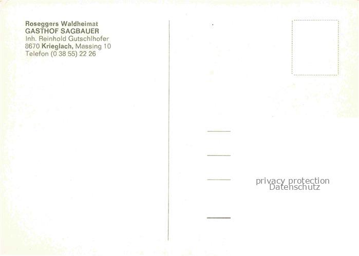 74086325 Krieglach Muerzzuschlag Steiermark AT Gasthof Sagbauer postalisch nicht gelaufen Erhaltung siehe scans [WerneD78] KatCode: 11390223061306
