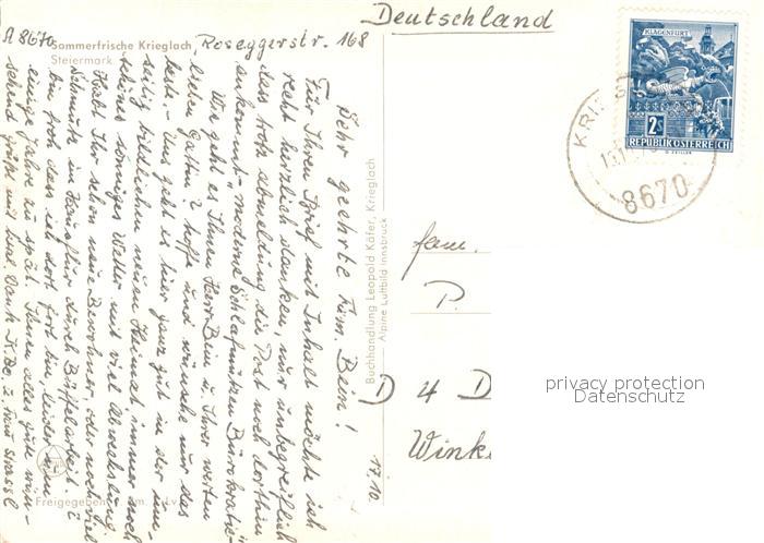 13516292 alte Postkarte Krieglach Steiermark Fliegeraufnahme postalisch gelaufen Erhaltung siehe scans [WerneD78] KatCode: 11390223061306