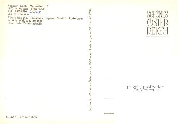13188401 Krieglach Steiermark Pension Knabl postalisch nicht gelaufen Erhaltung siehe scans [PaolaD17] KatCode: 11390223061306
