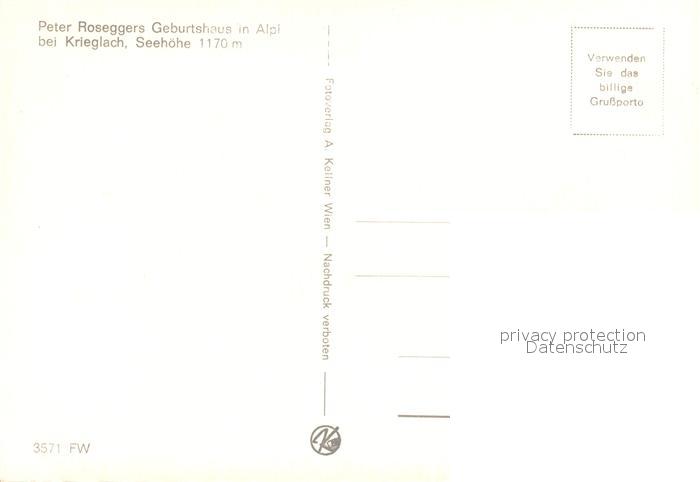 73339379 Krieglach Steiermark Peter Roseggers Geburtshaus in Alpl postalisch nicht gelaufen Erhaltung siehe scans [LiesaD40] KatCode: 11390223061306