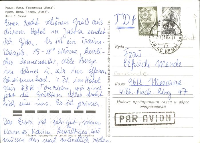 old postcard Krim Crimea postalisch gelaufen Ganzsache (eingedruckte Briefmarke) Erhaltung siehe scans