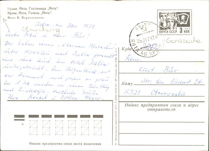 old postcard Krim Crimea Hotel postalisch gelaufen Ganzsache (eingedruckte Briefmarke) Erhaltung siehe scans