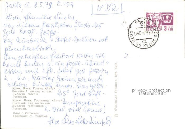 old postcard Krim Crimea Hotel Jalta postalisch gelaufen Erhaltung siehe scans