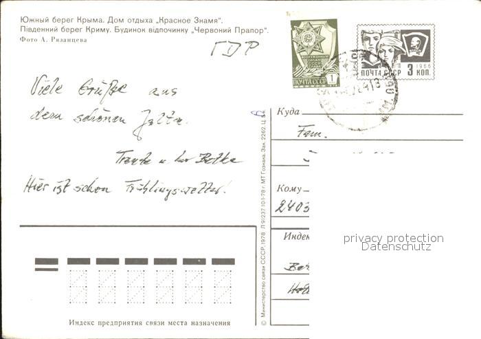 old postcard Krim Crimea Kurhaus Krasnoe Znamja postalisch gelaufen Ganzsache (eingedruckte Briefmarke) Erhaltung siehe scans [NatalD47 kt111box]