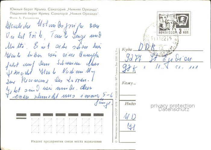 old postcard Krim Crimea Sanatorium Nischnjaja Oreanda postalisch gelaufen Ganzsache (eingedruckte Briefmarke) Erhaltung siehe scans [NatalD47]