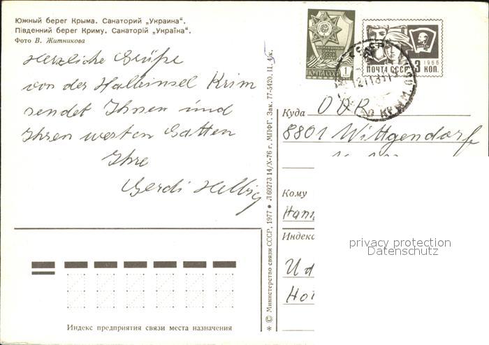 old postcard Krim Crimea Sanatorium Ukraine postalisch gelaufen Ganzsache (eingedruckte Briefmarke) Erhaltung siehe scans [NatalD47]