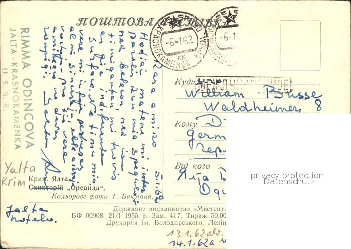 old postcard Krim Crimea Yalta Hotel postalisch gelaufen Erhaltung siehe scans