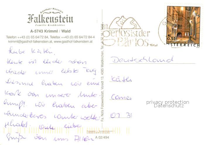 73167373 alte Postkarte Krimml Fliegeraufnahme Gasthof Falkenstein postalisch gelaufen Erhaltung siehe scans [LiesaD40] KatCode: 11390322050607